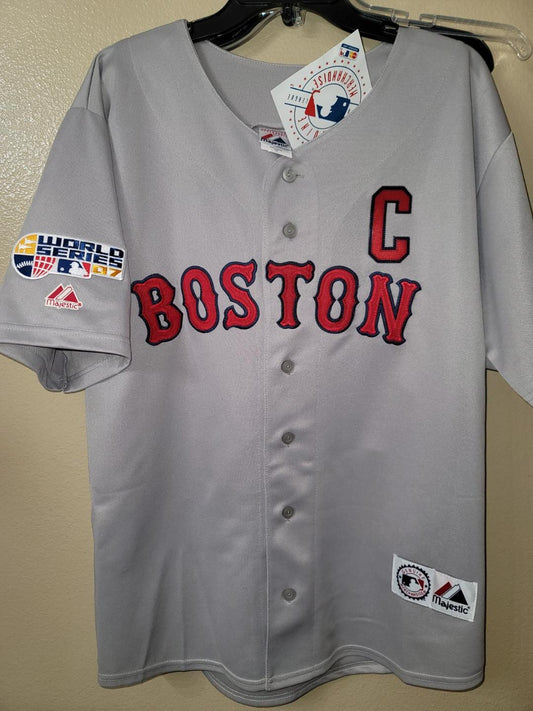 Majestic Boston Red Sox JASON VARITEK 2007 World Series Baseball Jersey GRAY