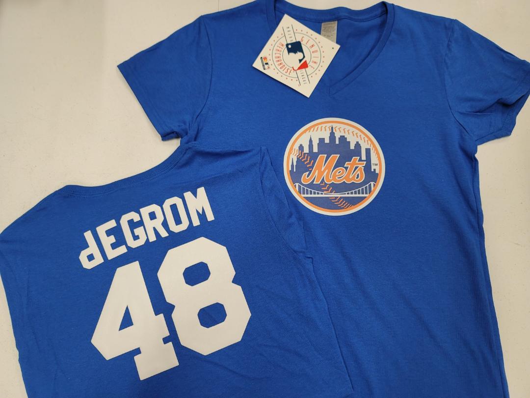 MLB Team Apparel Womens New York Mets JACOB DEGROM V-Neck Baseball Shirt ROYAL