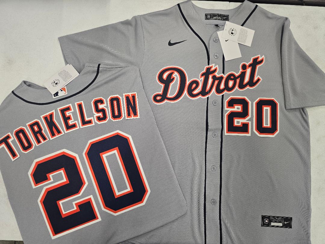 Nike Detroit Tigers SPENCER TORKELSON Sewn Baseball Jersey GRAY